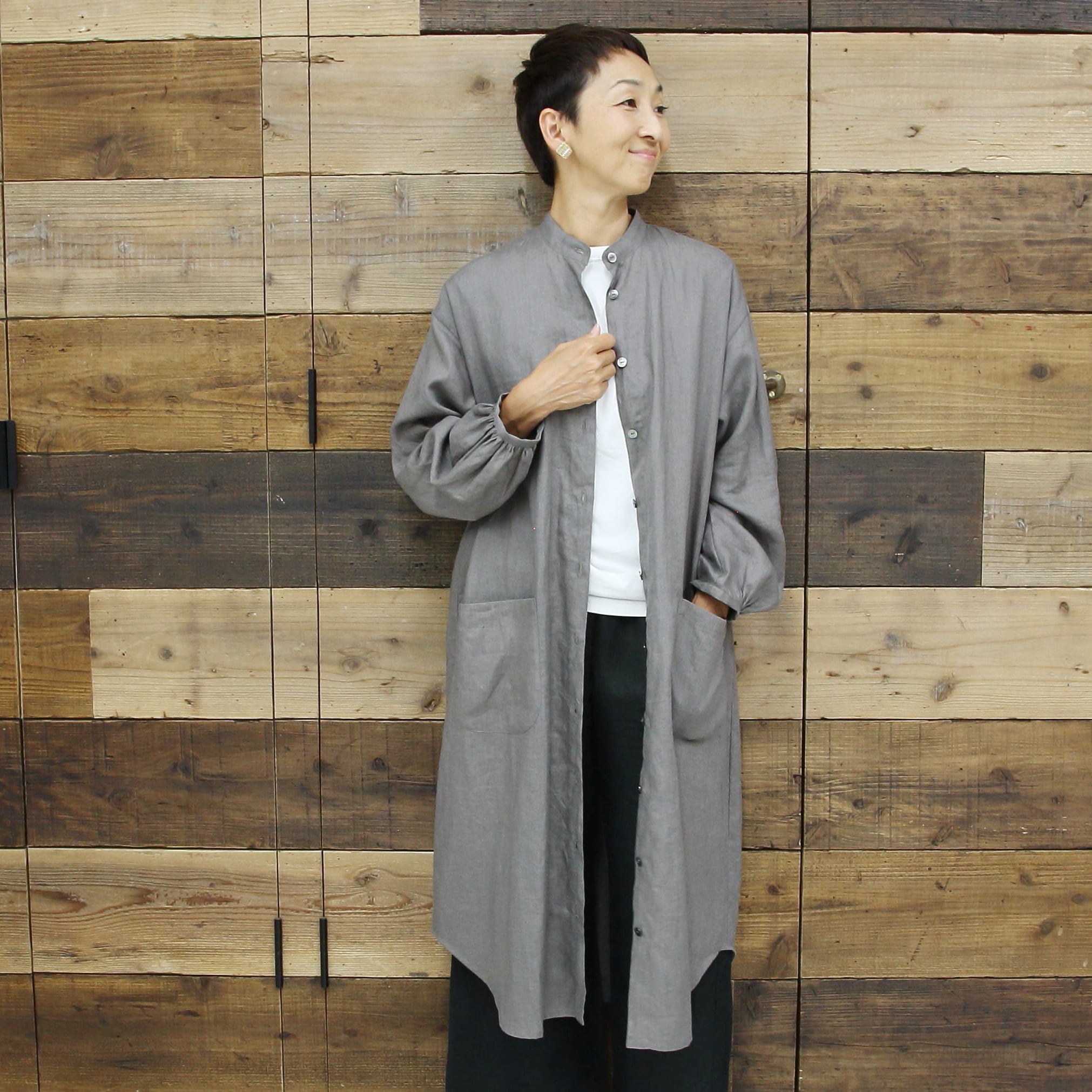 薄手のリネンなので、夏場でも羽織るのにお使い頂けます。